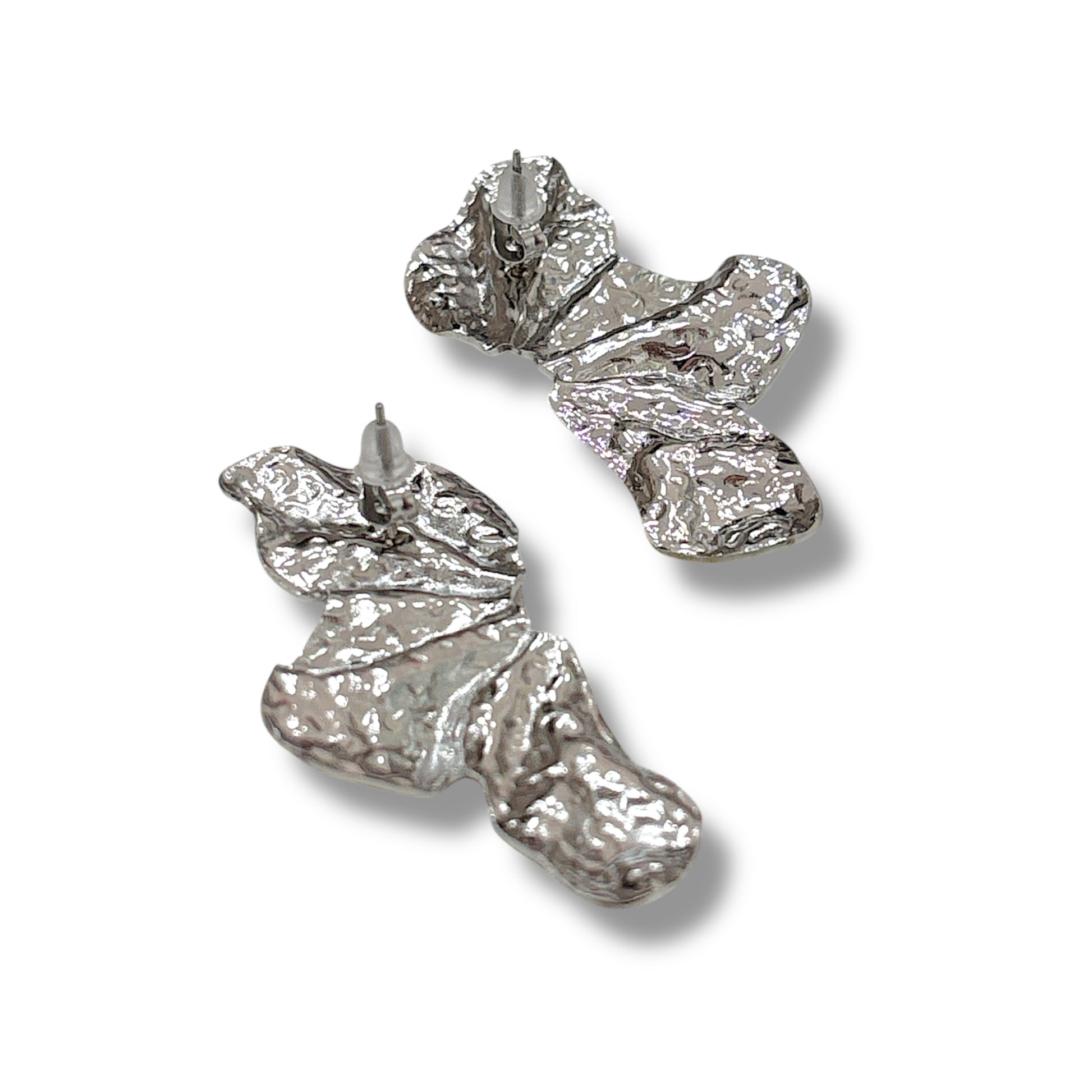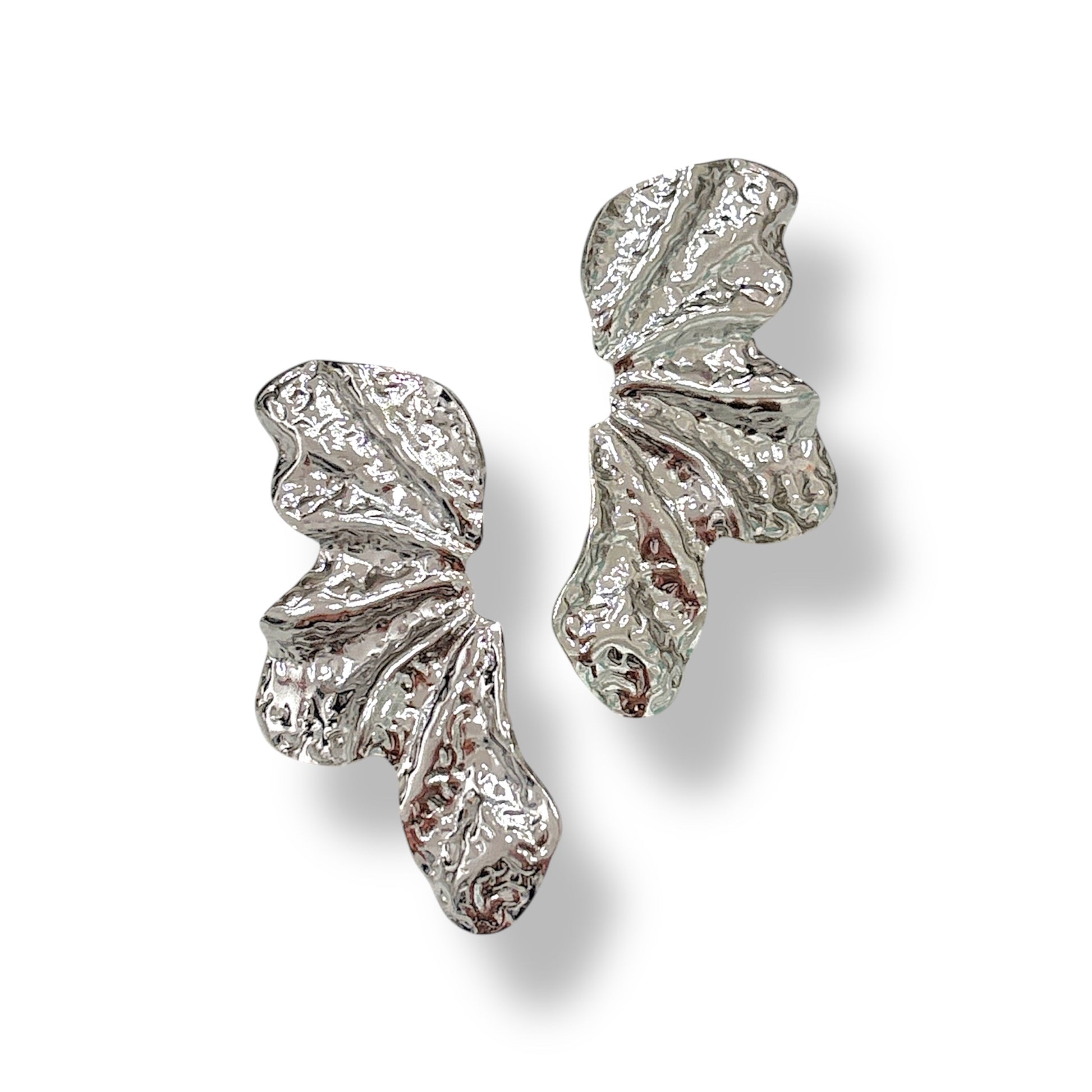 B129 orecchini a forma di foglia modello martellato realizzati in acciaio inox disponibili in Gold e in silver